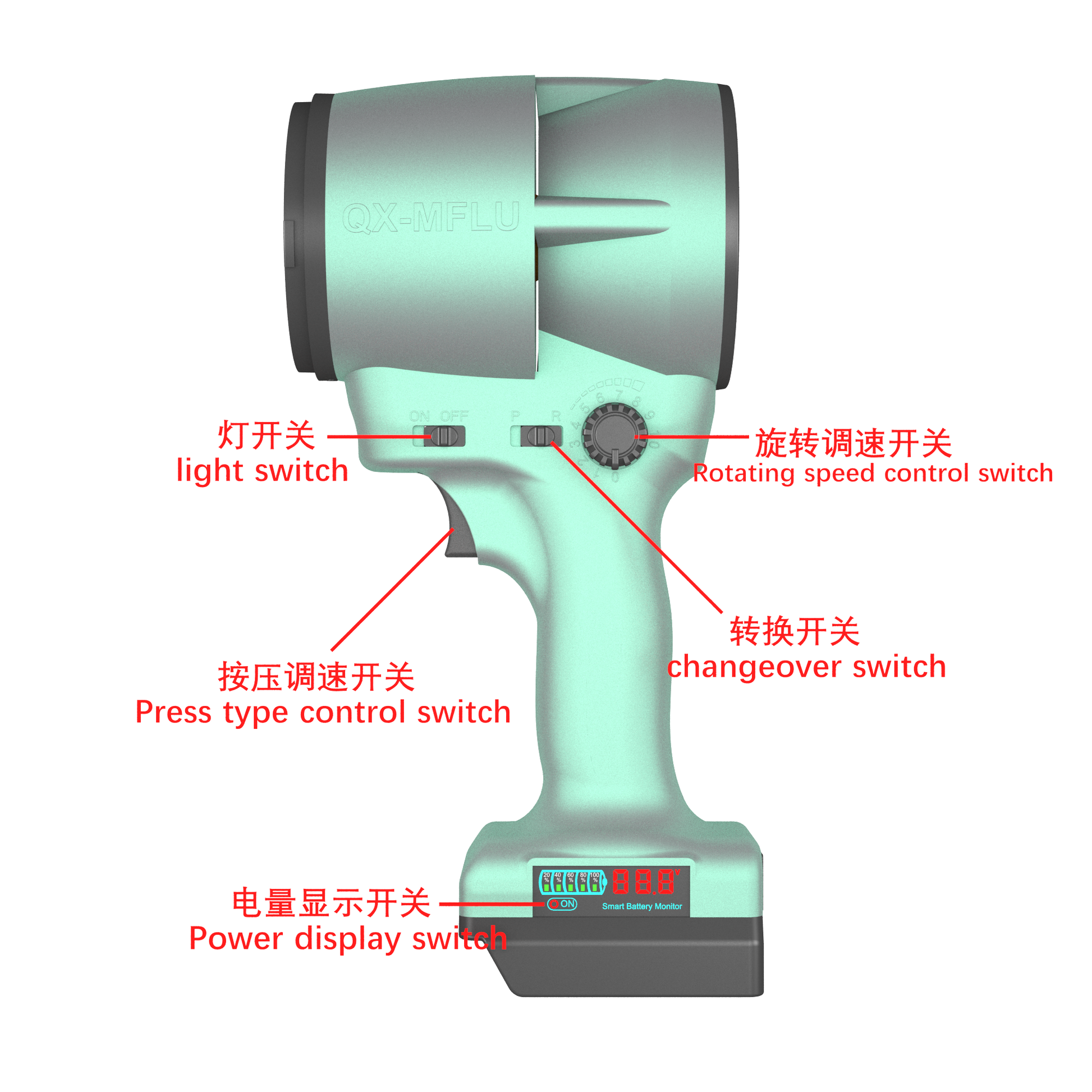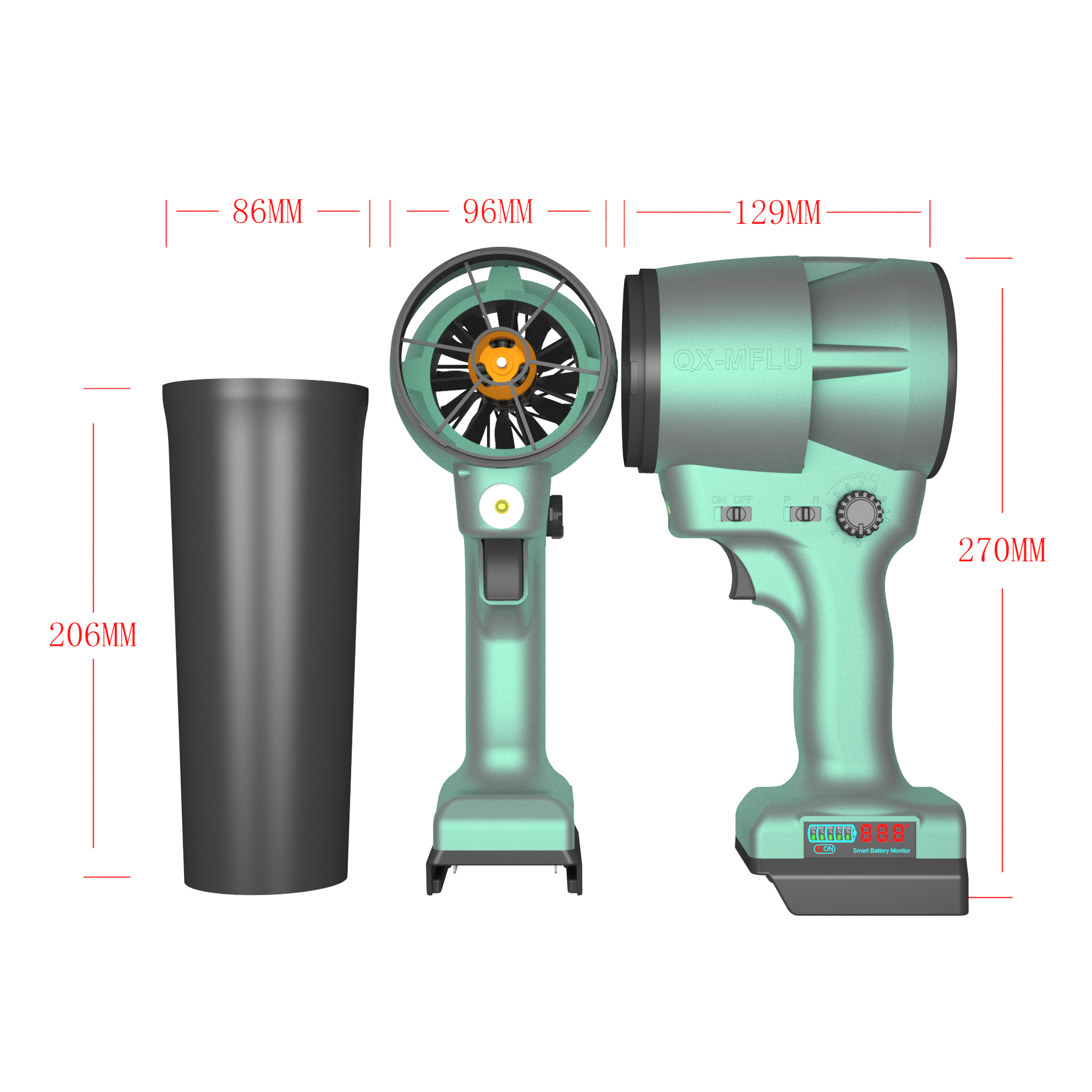 QX-MFLU 1900G 64mm portable violent fan, a powerful handheld fan suitable for outdoor water/dust/snow removal