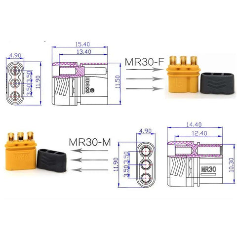 Amass 50Pairs MR30 Male Female Plug Connector with Sheath for FPV RC Lipo Battery Connecting ESC And Motors Multicopter Airplane