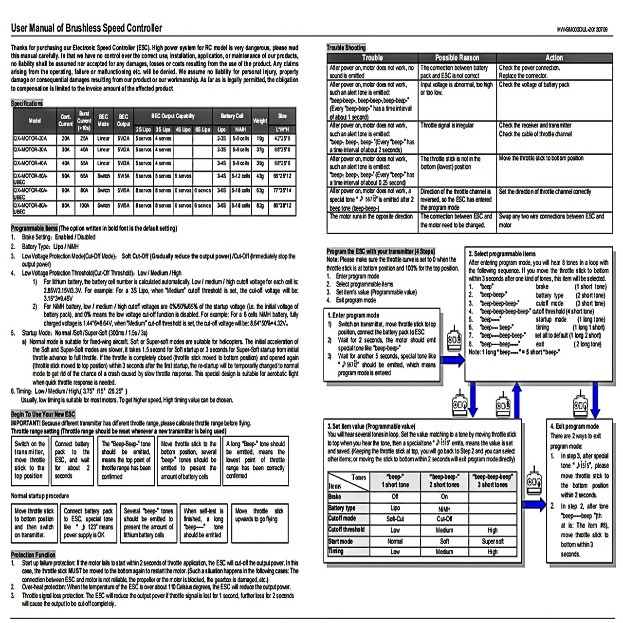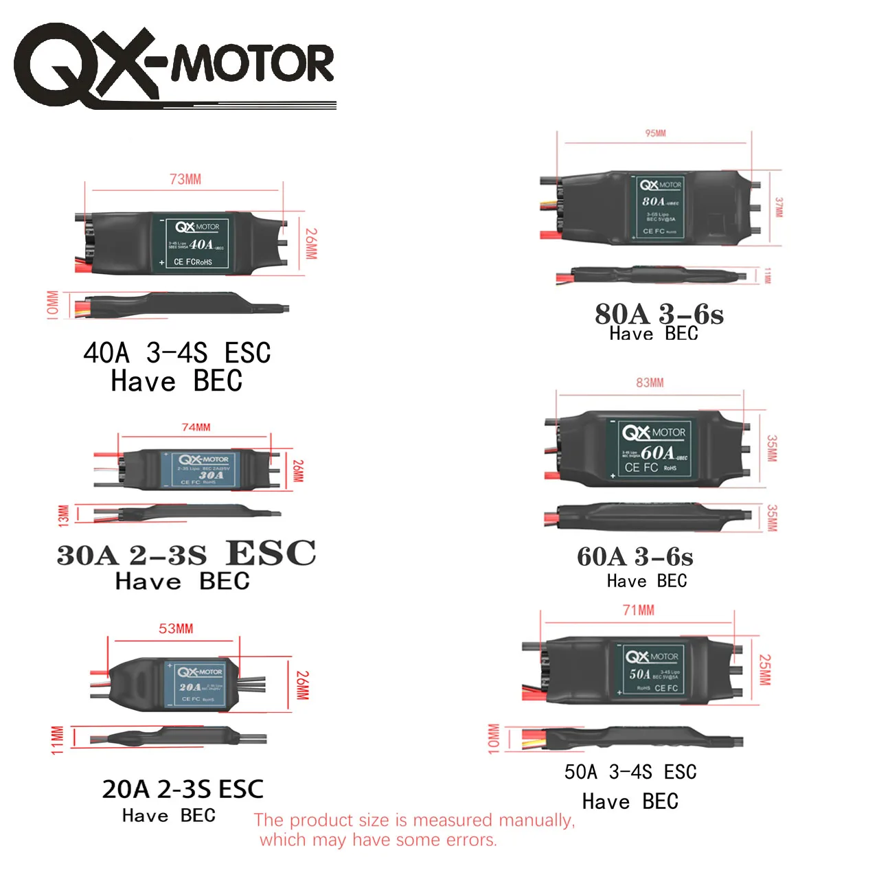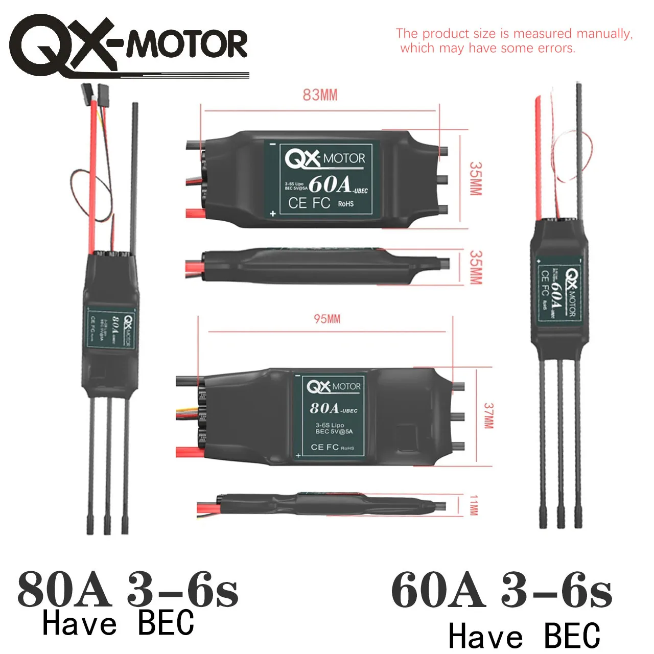 QX-MOTOR Brushless ESC 20A 30A 40A 50A 60A 80A Electronic Speed Controller 5V/2A 5V/5A BEC for RC Remote Control Aircraft Toys